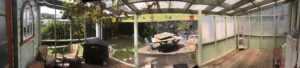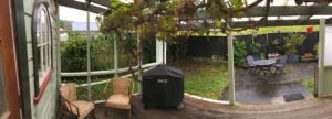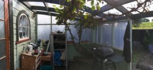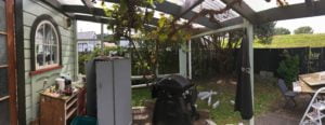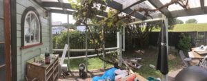 I’m pretty happy with the result. Still warm, lots of fresh air, the grape vine is now a feature vs. clutter, and there’s Wi-Fi. Time for a Hell Yeah. Or a beer. Definitely a beer. Removing some of the ancient framing was harder than expected, as it had been put in by a lost civilisation with their advanced technology. Observe the effect on my delicate physique, previously mentioned: